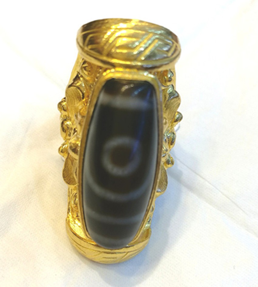 天珠,一種神秘而珍貴寶珠,不僅具有裝飾搭配的作用,更寓意著平安、好運(yùn)。藏族人認(rèn)為能夠供養(yǎng)一顆老天珠既是有了福報(bào),并相信能夠獲得意想不到的吉祥和圓滿。珍貴的天珠鑲嵌在做工精細(xì)的黃金花紋里,不僅是對(duì)時(shí)尚潮流的追隨,更是虔誠(chéng)信仰的一種體現(xiàn)。
