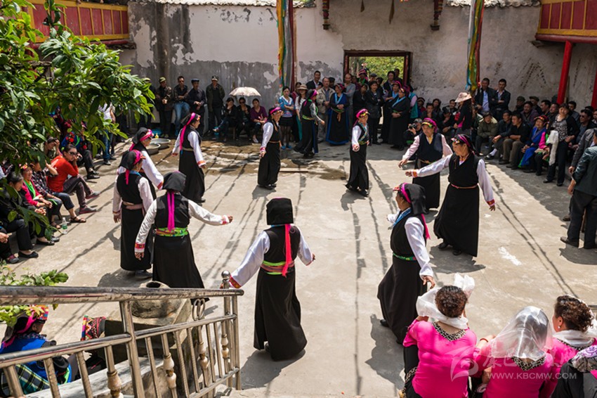 魚通鍋莊是魚通地區(qū)最傳統(tǒng)的一種舞蹈,在幾百年前已開始流傳,它在自身傳統(tǒng)文化的基礎(chǔ)上吸收了其他民族的文化,使其舞蹈獨(dú)具特色。魚通鍋莊動(dòng)作幅度小,剛?cè)岵?jì),步伐先慢后快,剛勁有力又柔美飄逸。在魚通地區(qū),跳鍋莊仍然是節(jié)慶婚宴時(shí)必不可少的內(nèi)容。無(wú)需什么演出場(chǎng)地,只要興之所至,人們便圍成一圈,中間放一張桌子,上面擺放酒、臘肉、錢、米或麥子。男女老少身著長(zhǎng)衫,分成兩隊(duì),男女領(lǐng)舞各一名,眾人隨著領(lǐng)舞之人對(duì)唱對(duì)舞。口中唱詞一出,手、腳便跟著甩出,歡樂喜慶便隨之而至。同魚通山歌一樣,魚通鍋莊目前也只有一些上了年紀(jì)的人才會(huì)跳了,由于沒有文字和曲譜,古老的魚通歌舞正面臨著失傳的尷尬境況。