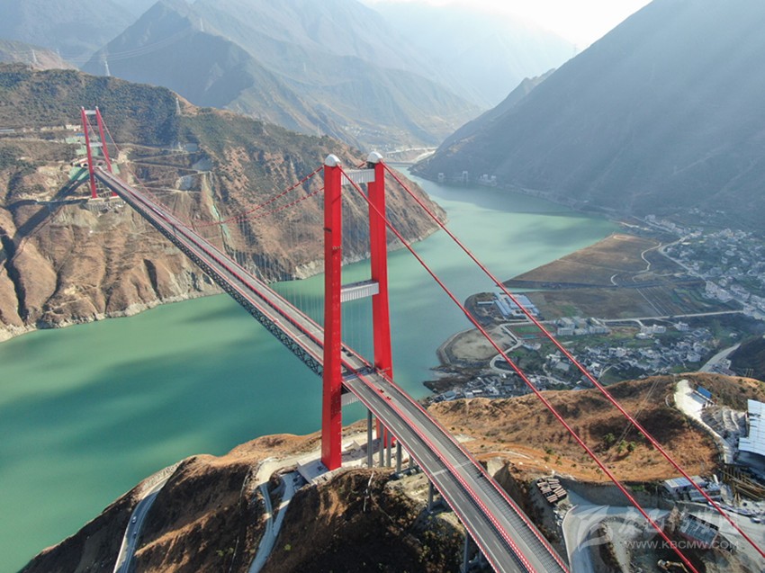 在瀘定,主跨1100米長(zhǎng)的瀘定大渡河興康特大橋,好似一條巨龍橫跨在奔騰咆哮的大渡河上。遠(yuǎn)處觀望,能感覺(jué)到峽谷的風(fēng)猛烈地刮過(guò),兩岸的山勢(shì)高拔嶙峋,仿若刀劈斧削一般讓人眩暈。大橋穩(wěn)穩(wěn)地橫架在兩山之間,它是人類智慧與創(chuàng)造力的結(jié)晶。