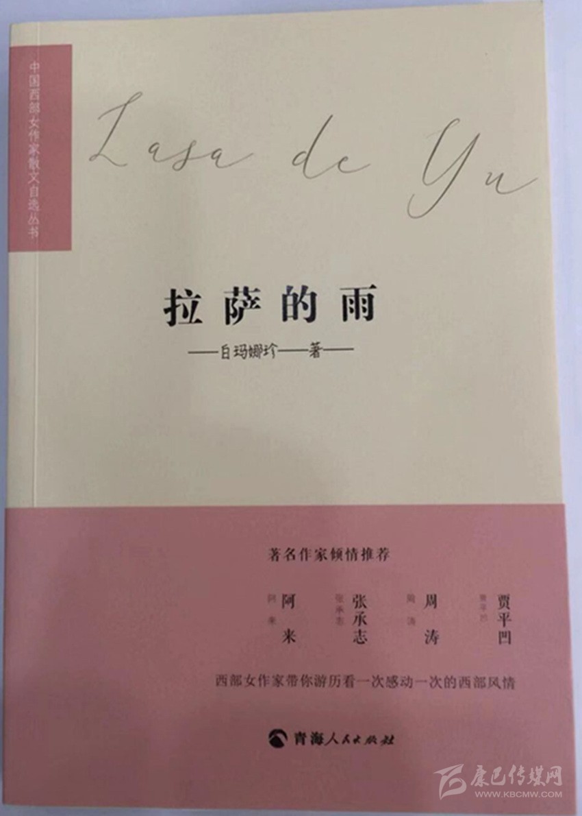 藏族作家白瑪娜珍散文集《拉薩的雨》近日由青海人民出版社出版。該書(shū)是青海人民出版社策劃出版的“中國(guó)西部女作家散文自選叢書(shū)”之一,由西部六省區(qū)的六位女性作家組成,每個(gè)省區(qū)各一位,分別是西藏的白瑪娜珍、陜西的杜文娟、新疆的李穎超、甘肅的習(xí)習(xí)、寧夏的阿舍、青海的唐涓。《拉薩的雨》選編了白瑪娜珍近年創(chuàng)作的散文單篇,文彩飛揚(yáng),飽含對(duì)西藏的摯愛(ài),敘述了藏地變遷中一個(gè)個(gè)真實(shí)感人的故事。著名作家張承志、賈平凹、周濤、阿來(lái)傾情推薦,對(duì)六位作家的作品給予了充分肯定?!靶形幕蚣で轱w揚(yáng),或娓娓道來(lái),或追古撫今,文筆深刻細(xì)膩,具有濃郁的西部風(fēng)情,展示了作者對(duì)高天厚土的所思所想,情懷與擔(dān)當(dāng),描述了西部地區(qū)多民族的種種生存景觀,透過(guò)他們的生活方式,感悟出特定人文環(huán)境下的文化精神和高潔的人性光輝。”