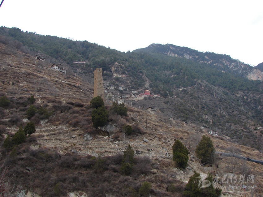 半山腰處,有三座高約三十余米的碉樓,因為建在山包之上,顯得更加的高大。古碉的外墻上,墻筋外露,層層疊疊,非常的美觀。在丹巴,人們習(xí)慣將這種墻筋外露的碉樓稱為母碉,而墻筋不外顯的則稱為公碉。這種母碉在丹巴的其它村落也可以尋覓到它的蹤影,不過如此密集修建在一起還不多見。