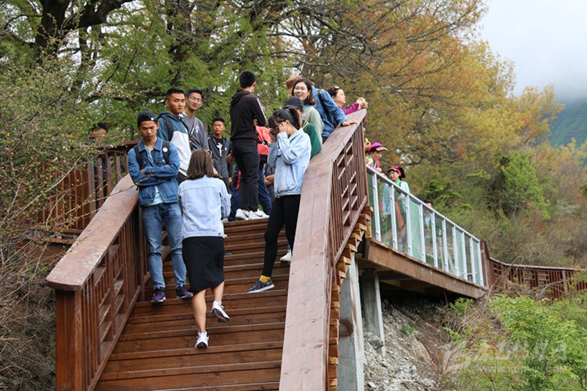 麥崩木棧道上的游客。