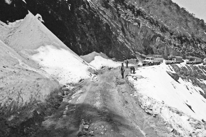 也就是在這一年,我們幾經周折,終于聯(lián)系到了遠在北京的翟新莉女士。當年修筑二郞山公路時,翟女士的父親翟壽亭時任162團政委,既是指揮者,也是親歷者。聽過自我介紹,素未謀面、素昧平生的翟女士爽快答應,積極支持,不僅寄來《從豫皖蘇到康藏高原》一書,還發(fā)來了父親留下的一組珍貴照片。照片上,齊腰深的大雪讓人不寒而栗,四面透風的工棚使人倍感覺艱辛。心懷敬仰的閱讀中,一座座大山撲面而來,二郞山、折多山、雀兒山上,戰(zhàn)天斗地的故事驚天地泣鬼神。