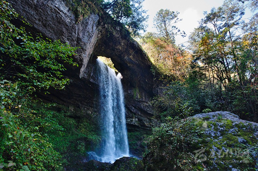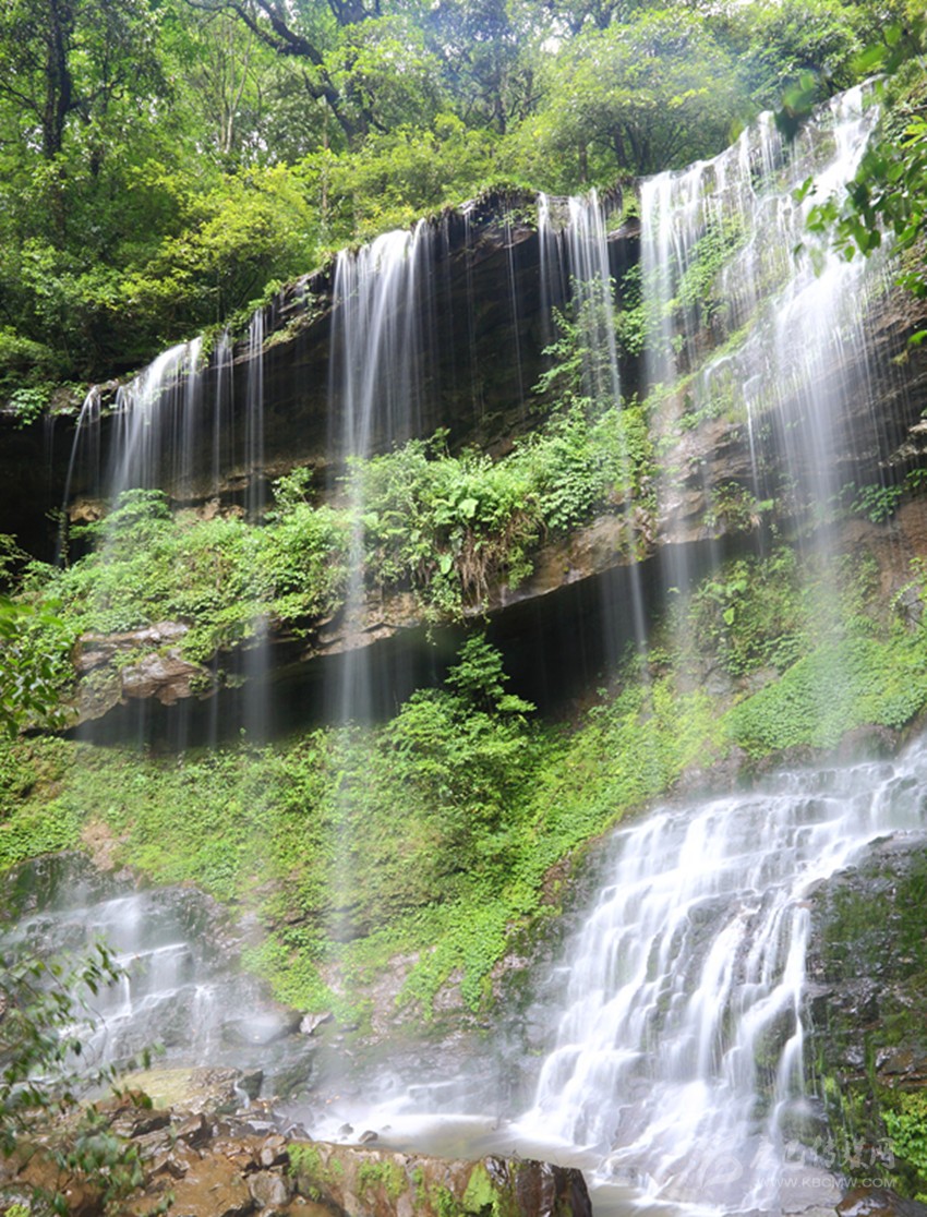 我的腳步?jīng)]有停留,再轉(zhuǎn)過(guò)一個(gè)彎道,瀑布就不見(jiàn)了,像我樸素的心歷經(jīng)了一場(chǎng)美妙的幻境一樣忽然。我聽(tīng)到前方有更大的水聲跌落,仰頭就見(jiàn)一道更高的瀑布從高山峭壁之間,凌空垂下,水花飛濺的聲音響徹山谷。腳下的石徑像有生命似的蜿蜒穿入了瀑布之中,我登上去,站在其間看著瀑布從眼前落下,大口呼吸,心胸豁然開(kāi)朗,這是瀑布給我的啟迪啊。