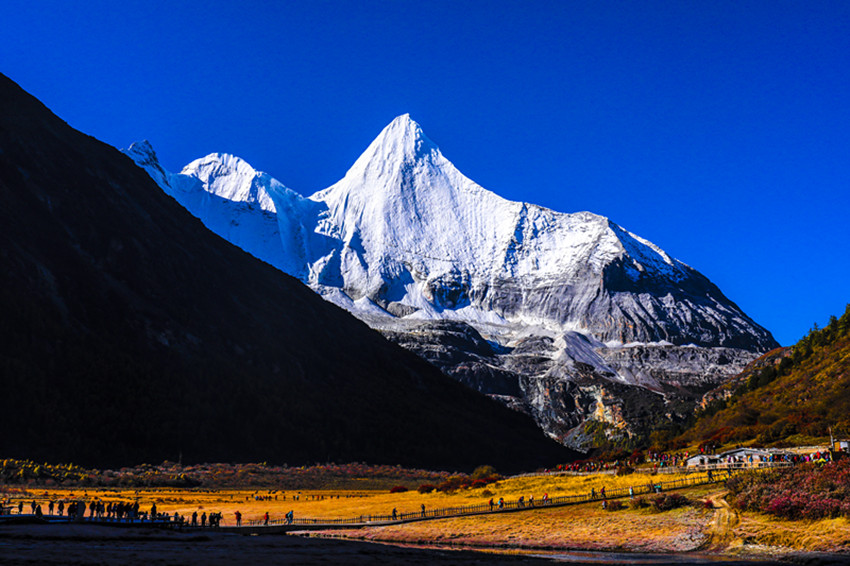 木雅民族的鍋莊跳起來了,穩(wěn)沉而有力,多情而悠長,在雪峰環(huán)繞的庇護(hù)下,“木雅辛康”(意為天堂般的木雅地方)歡樂的歌聲盈滿了整個山谷。