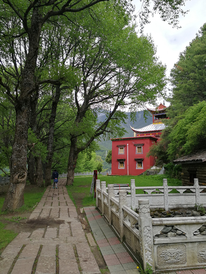 中國民俗有“大年初一不竄門”,這一天,康定人很多都會去寺廟燒香敬佛。前年大年初一,我便去了觀音閣。進門處,有專供燒紙錢的地方。再上階梯,有長列的白色佛塔,進寺就可點燈朝拜。出了觀音閣,我順道去找獅子巖。公路一側(cè)的堡坎已將原來的小徑斬斷,翻上堡坎,小徑幾乎已沒了蹤跡。再仰頭望,獅子巖已是掩映在濃密的綠樹雜叢間。長在右側(cè)的花椒樹,已不見蹤影。幾株高大的白楊樹遮天蔽日,最大的都長到盆口粗了?!鞍倌陿淠尽保@無疑還是當年那幾棵白楊樹了。我艱難地鉆過荒叢爬到獅子巖腳下,那“祭祀臺”上如過去一樣擺放有貢品,旁邊和樹枝上掛有經(jīng)幡,但周圍仍沒有一絲煙熏火燎過的痕跡。