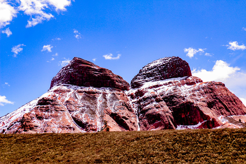 我這次,正好就走近了紅色的山,走進了青藏東南緣橫斷山北部、康巴高原新龍的紅山懷抱,它藏名叫“絨多巴日”,當?shù)厝硕己喎Q它紅山,也稱它為銅色吉祥山或蓮花生銅色光明宮。