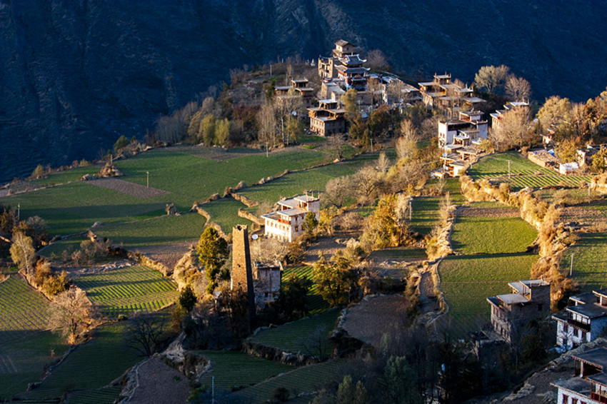 如果說衣著艷麗、高挑健美、輪廓分明、深情嫵媚的丹巴美女,實(shí)現(xiàn)了所有女孩子心中的浪漫的公主夢(mèng),少女心,是丹巴浪漫唯美氣息代表的話。那么筆直挺拔、棱角分明、飽經(jīng)風(fēng)雨、巍然屹立的碉樓,則是丹巴陽剛之美的代表。