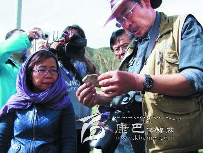 6月7日,陜西省考古研究院研究員張建林和考古隊員們沿石經(jīng)壇城走了一圈,在他們身后,當(dāng)?shù)氐哪撩窬o緊跟隨,一是為轉(zhuǎn)經(jīng),二是為了聽聽專家說些什么。偶爾,專家們停下來,仔細(xì)聆聽當(dāng)?shù)毓ぷ魅藛T的介紹,不少牧民也停下來,一臉笑容看著眼前的專家。