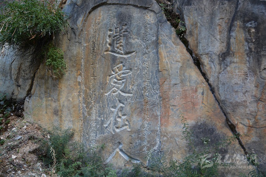 《纜轡澄清》:在《遺愛在人》左上方的石壁上,為民國年間四川邊軍代理分統(tǒng)高德翼題,攬轡:拉住馬韁。澄清:平治天下。表明了其澄清天下的抱負。由于雨水侵蝕,已不是很清晰了。