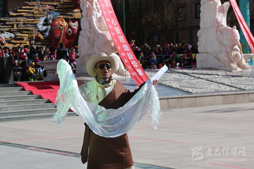 吉祥頌,藏語稱為“協(xié)巴”,是州級非物質(zhì)文化遺產(chǎn)之一。“協(xié)巴”在藏族民間生活中占有重要的地位,尤其在喜慶活動上,是一項不可或缺的重要儀式。州級非物質(zhì)文化遺產(chǎn)傳承人——高城鎮(zhèn)車馬村的翁堆老人手捧潔白的哈達(dá),為觀眾表演了《協(xié)巴——中國夢、理塘夢》,展現(xiàn)了時代變遷中,“吉祥頌”這一民間藝術(shù)在思想內(nèi)容和藝術(shù)手法的創(chuàng)新之美。