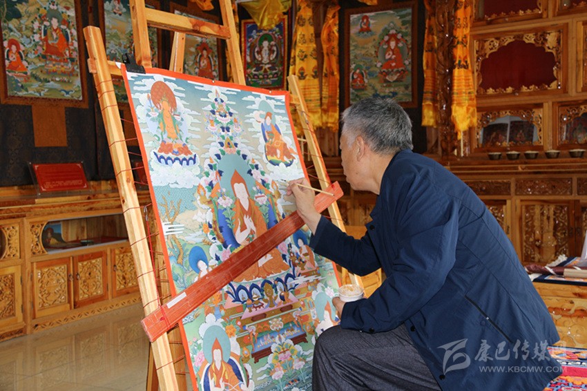 顏登澤仁,我州國家級嘎瑪噶孜唐卡畫派傳承人、省藏校教師。2017年3月,北京大學文化資源研究中心、中國非物質(zhì)文化遺產(chǎn)推廣中心組織他與另外八位唐卡大師及一位顏料大師共同完成《十明圖》唐卡創(chuàng)作。截至今日,距離他完成兩幅唐卡創(chuàng)作剛好一個月。