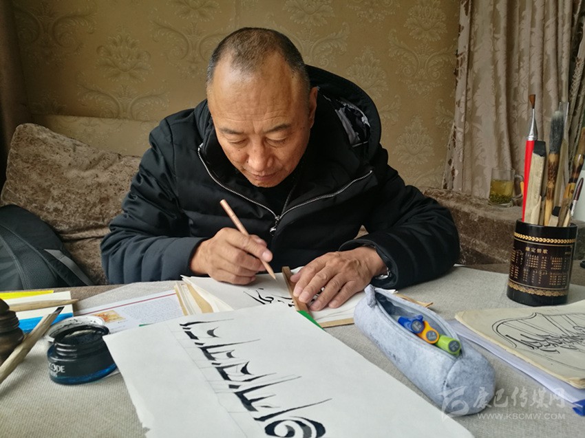 12月11日早晨,鈴聲劃破校園的寧靜。四川民族學院退休教師仁真丹松鋪紙備墨、運轉(zhuǎn)竹筆,在家中開始了每天的藏文書法練習。