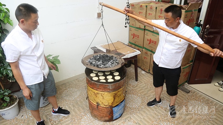 “周聾子點(diǎn)心”用料和炊具十分講究,需以甘孜州本地小麥磨制成粉,和以上等豬板油經(jīng)秘制程序制作“酥皮”,用紅豆沙、黑芝麻、白芝麻、核桃碎、玫瑰花瓣、精制白糖和餡,包好壓制成餅后用特制的上下雙層加熱的傳統(tǒng)鏊爐(俗稱火鏊子)烤制。