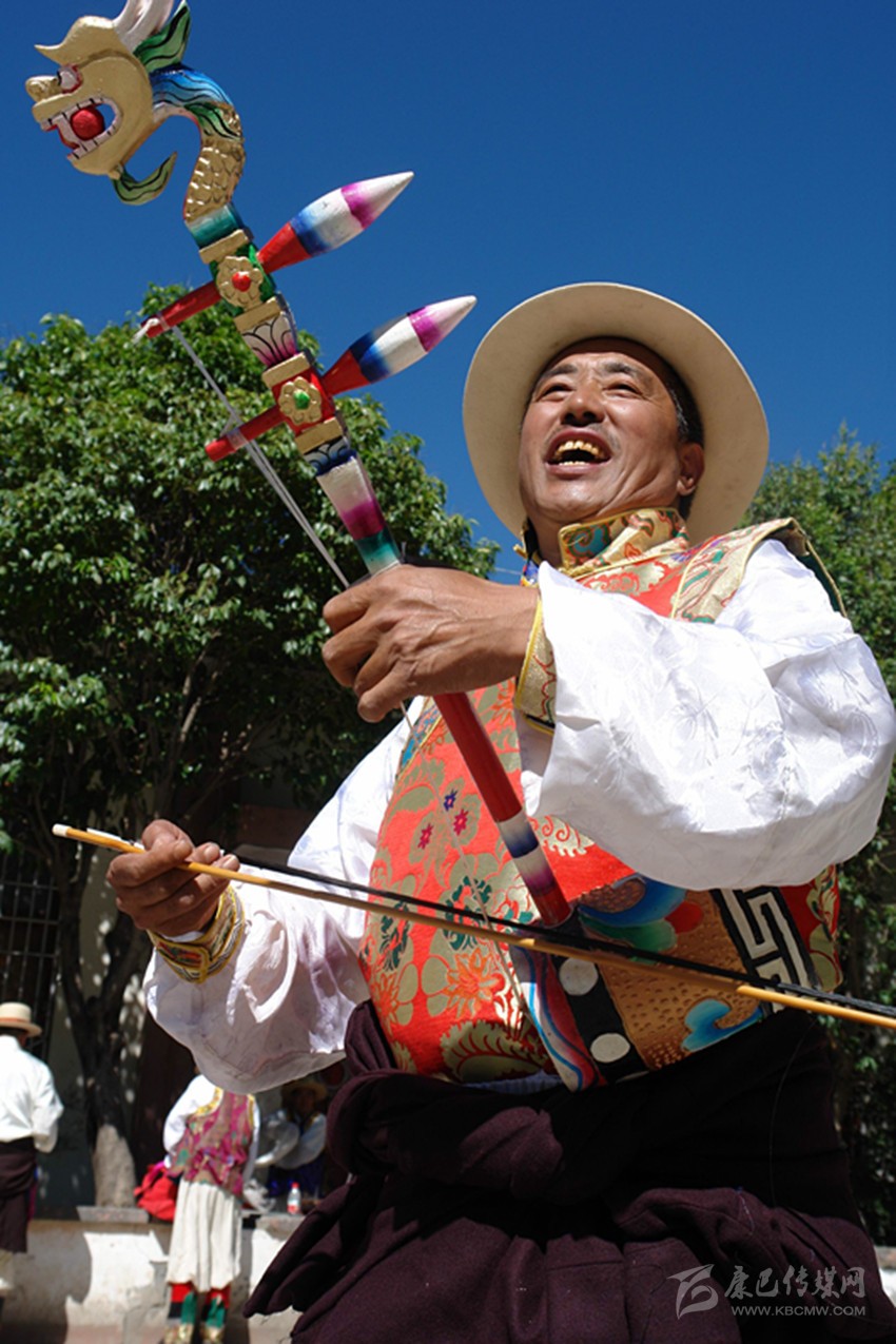 八歲時(shí),就從外婆那里學(xué)會(huì)了拉“胡幾”,拉得不好,鄰居們笑:“咿咿呀呀的,像驢子在叫”。人們?cè)谔镩g地角跳弦子時(shí),他夾在圈子里“臊堂子”調(diào)皮,后來(lái)便跟著大人跳,跳著跳著就學(xué)會(huì)了。有些動(dòng)作不標(biāo)準(zhǔn),外婆和母親就會(huì)笑著糾正。1972年,縣上的“毛澤東思想文藝宣傳隊(duì)”選中了剛滿(mǎn)十四歲的他,在“文革”中后期鋪天蓋地的運(yùn)動(dòng)中,他們上山下鄉(xiāng)進(jìn)軍營(yíng)送文化,弦子舞技得到強(qiáng)化,藏二胡就是在這期間越拉越好的。那時(shí)候糧食還沒(méi)有過(guò)關(guān),公社分配的工分又重,家里的日子過(guò)得很艱難。經(jīng)常跟宣傳隊(duì)唱唱跳跳,可以不做那些繁重的農(nóng)活了,他還暗地里偷偷慶幸過(guò)?!拔母铩苯Y(jié)束后,縣上成立了業(yè)余弦子隊(duì),他自然也在其中,這時(shí),他已經(jīng)能記住二百多首弦子詞曲了。西藏恢復(fù)雪頓節(jié)那年,應(yīng)該是1986年吧,他們又跳到了圣地拉薩,受到了西藏各地官員和群眾的歡迎??途永_的巴塘人在雪頓節(jié)盛典上看到巴塘弦子,流下了激動(dòng)的淚水,很多人過(guò)來(lái)跟他們“打招呼”,問(wèn)候家鄉(xiāng)人。跳弦子五十多年,去拉薩應(yīng)該是最難忘的事情了?!鞍桌瓫_!說(shuō)拉薩道拉薩,拉薩建在海面上?!边@是小時(shí)候外婆教他唱的。和所有的藏族一樣,他從小就向往那塊圣地。八十年代交通極其不方便,去成都都要走整整四天,去拉薩多難啊,所以村里人都很羨慕他們弦子隊(duì)。他還記得,在向布達(dá)拉宮虔身朝拜的那一刻,他流下了感動(dòng)和幸福的淚水。