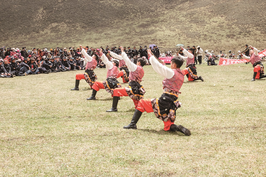 這個演出隊匯集了當時縣上最優(yōu)秀的踢踏舞者,在那里我認識了陳幫文、洛呷、伍伯康、貢布、絨波、俄洛啟加等,那真是一批踢踏舞的精英,每當音樂響起,你就看他們那翻飛的腳步如流動的浪花,酣暢淋漓,激情四射。