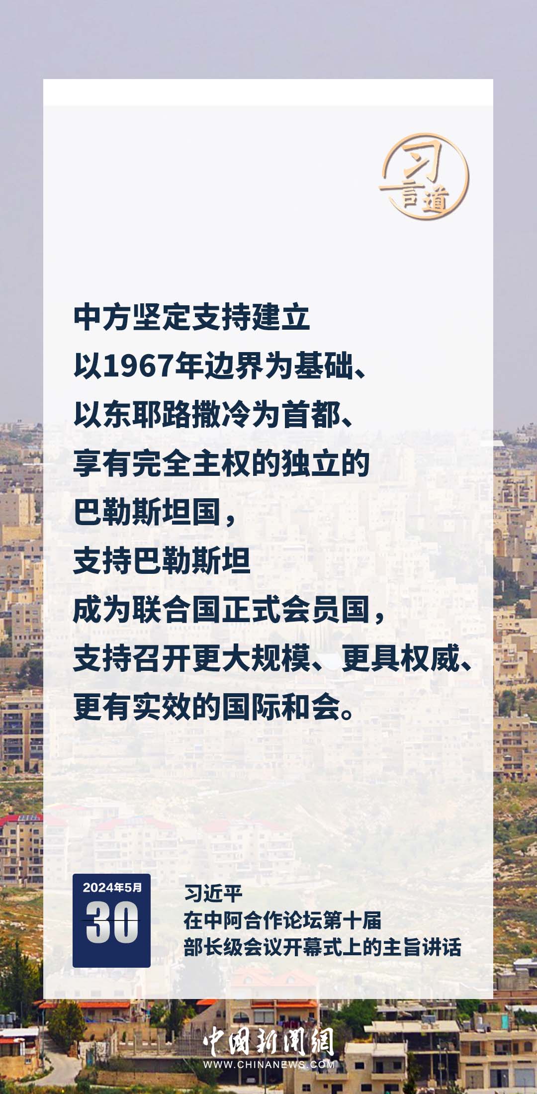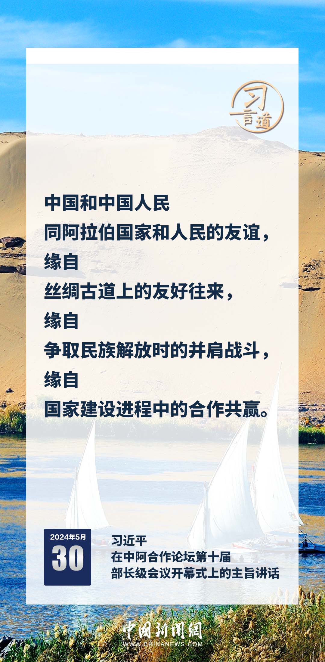 5月30日上午,國家主席習近平在北京釣魚臺國賓館出席中阿合作論壇第十屆部長級會議開幕式并發(fā)表主旨講話。習近平指出——