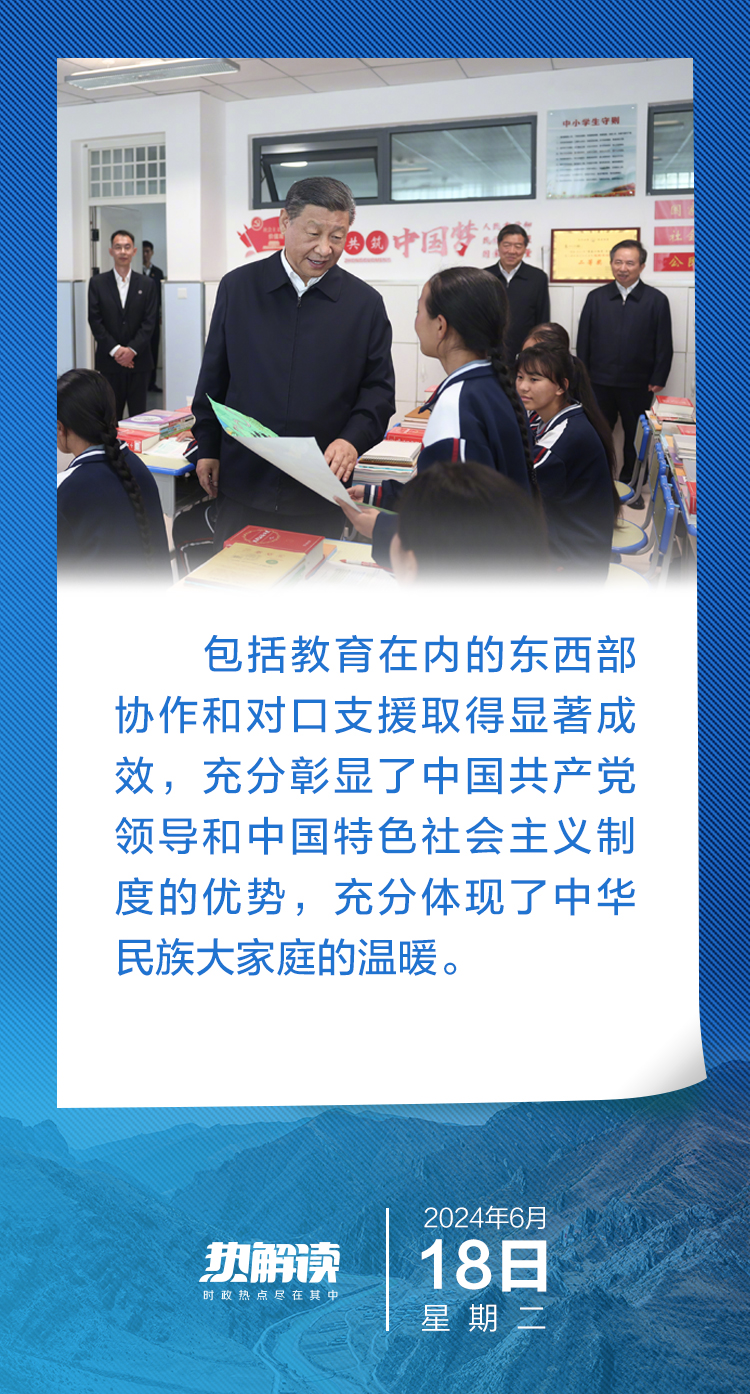 6月18日下午,在青海省考察的習近平總書記,首站來到這所中學看望老師和同學們。他先后走進食堂、宿舍、教室,關(guān)心學生們的飲食、住宿、學習……了解當?shù)厣钊胪七M教育工作東西部協(xié)作和對口支援等情況。