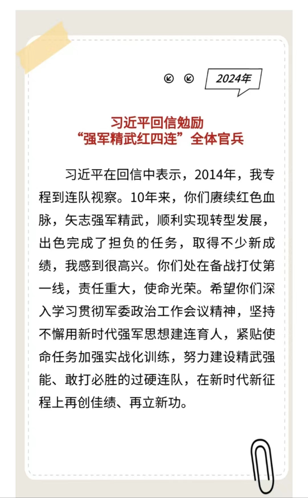 習(xí)主席給“強軍精武紅四連”全體官兵回信