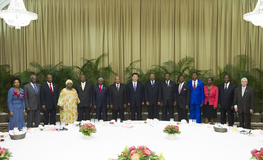 ??圖為2013年3月28日,國家主席習近平在南非德班同非洲國家領(lǐng)導人早餐會合影。新華社發(fā)
