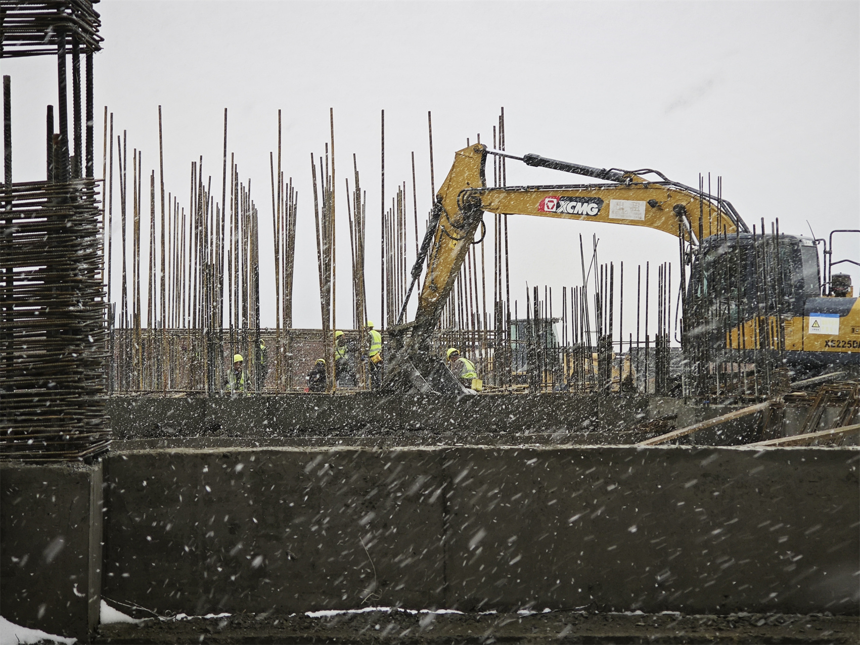 吳慶根和同事頂著風(fēng)雪,抱起一捆稻草、一卷泡沫走進(jìn)工地。這處工地是正在建設(shè)的電站升壓站輔助用房,頭一天剛剛完成0米以上的首梁澆筑,現(xiàn)在最要緊的就是混凝土的養(yǎng)護(hù)。“溫度最關(guān)鍵。”吳慶根介紹,在混凝土凝固過程中,溫度過高或過低都有可能造成凝固質(zhì)量不好,“今天氣溫特別低,要趕緊采取保暖措施?!?/span>