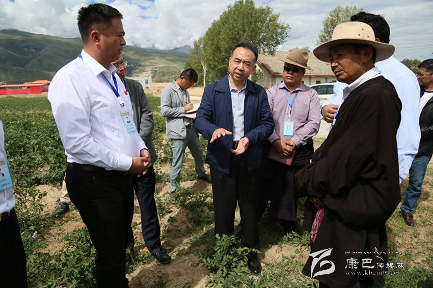 范銳平在甘孜縣拖壩村黨員精準(zhǔn)扶貧示范項(xiàng)目基地調(diào)研。