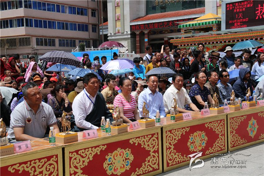 儀式上,當(dāng)擁金措、貢桑吉和布姆分別演唱了《世紀(jì)情白玉夢(mèng)》、《欽諾》和《康巴之戀》時(shí),場(chǎng)下掌聲不斷。接著,當(dāng)州民族歌舞團(tuán)的小伙們跳起歡快的《踢踏》時(shí),在場(chǎng)的觀眾立刻與之互動(dòng),并不時(shí)爆發(fā)出熱烈掌聲。