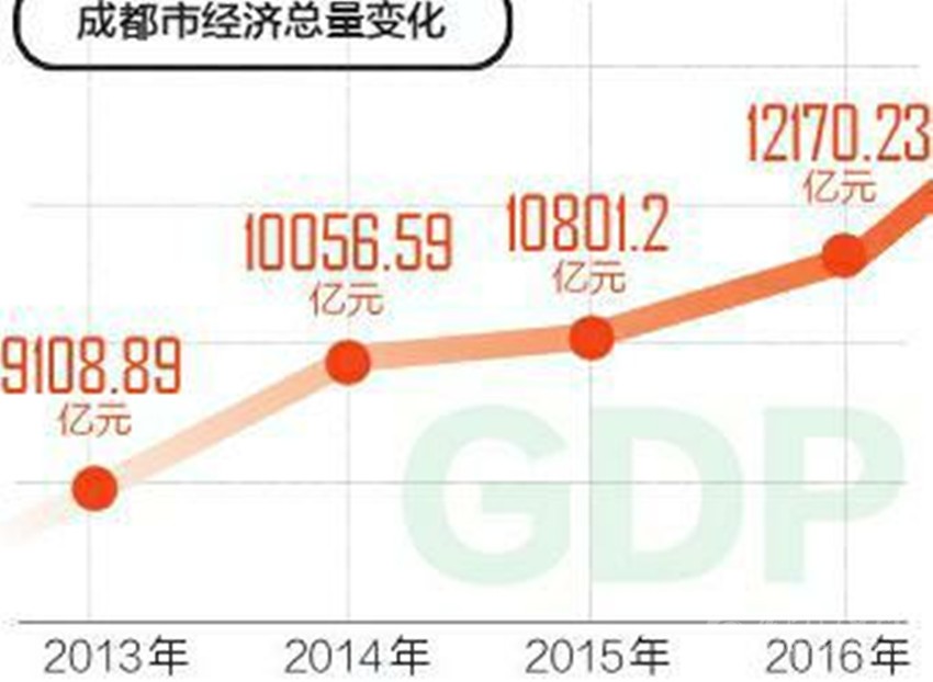 2014年,成都GDP首次突破萬億元大關(guān),此后兩年又連跨兩個千億臺階,首位城市的地位穩(wěn)若磐石。