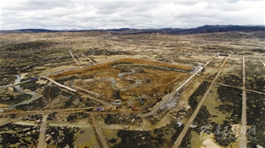 四川甘孜藏族自治州稻城縣海子山,平均海拔4110米。在散落著數(shù)米寬巨石的曠野上,一塊有10個(gè)足球場大的圓形區(qū)域已經(jīng)成型,挖土機(jī)忙著挖出3個(gè)“品”字形、深4.5米的巨型水池。