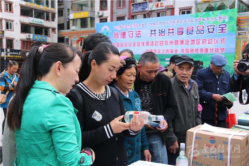 啟動(dòng)儀式后,在康定情歌廣場(chǎng)上,來(lái)自州食安委和康定市食安相關(guān)成員單位通過現(xiàn)場(chǎng)咨詢、板塊展示、張貼海報(bào)標(biāo)語(yǔ)、發(fā)放資料等方式,為前來(lái)關(guān)注食品安全的市民們發(fā)放和講解相關(guān)問題。在現(xiàn)場(chǎng),記者看到廣大市民關(guān)注最多的是假冒偽劣食品,對(duì)于如何識(shí)別,現(xiàn)場(chǎng)工作人員都一一進(jìn)行了耐心細(xì)致地講解。