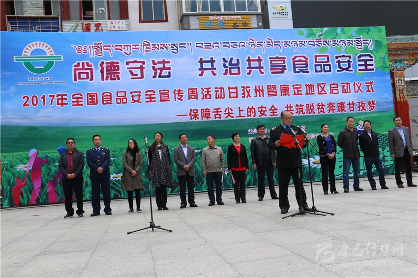 本網(wǎng)訊(記者 宋志勇 文/圖)6月29日,由州人民政府主辦的“2017年全國(guó)食品安全宣傳周活動(dòng)”暨康定地區(qū)啟動(dòng)儀式在康定舉行,目的是進(jìn)一步普及安全法律法規(guī)和基本知識(shí),提高公眾的食品安全意識(shí)和自我保護(hù)能力,進(jìn)一步強(qiáng)化食品生產(chǎn)經(jīng)營(yíng)者的法律意識(shí)、責(zé)任意識(shí)、誠(chéng)信意識(shí),進(jìn)一步強(qiáng)化食品安全“政府負(fù)總責(zé)、監(jiān)管部門各司其責(zé)、食品生產(chǎn)經(jīng)營(yíng)者是第一責(zé)任人”的責(zé)任,為構(gòu)建食品安全長(zhǎng)效機(jī)制營(yíng)造良好的氛圍。