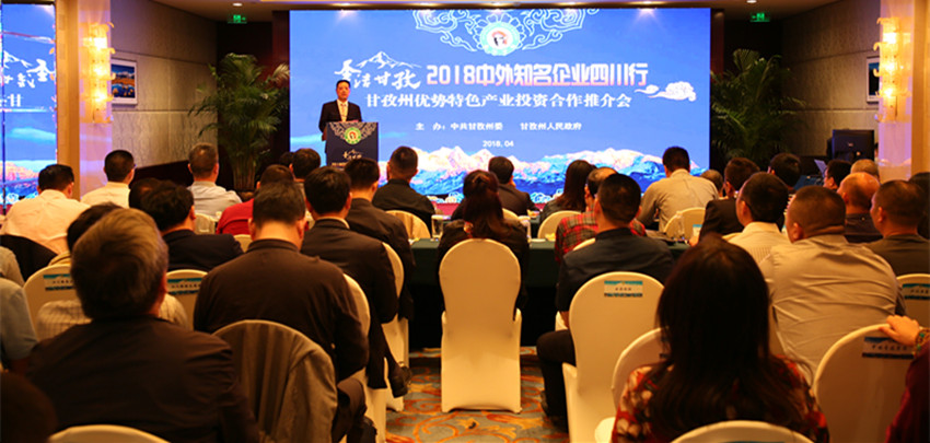 本網(wǎng)訊(記者 楊杰 文/圖)春漫漫潤巴蜀、云悠悠繞甘孜。4月18日,借助“2018中外知名企業(yè)四川行”活動契機,我州2018優(yōu)勢特色產業(yè)投資合作座談會在成都舉行。本次推介以旅游業(yè)、農牧業(yè)、中藏醫(yī)藥業(yè)為重點,共宣傳推介招商引資項目121個,投資總額約564億元。