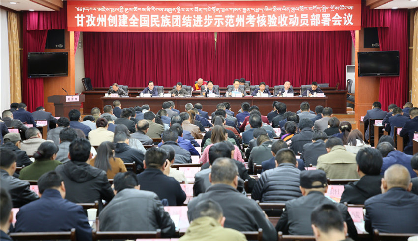 本網(wǎng)訊 近日,我州創(chuàng)建全國(guó)民族團(tuán)結(jié)進(jìn)步示范州考核驗(yàn)收動(dòng)員會(huì)在康定召開。州委書記劉成鳴出席會(huì)議并講話。他強(qiáng)調(diào),全州上下要以黨的十九大、習(xí)近平總書記關(guān)于民族工作系列重要講話和省委書記彭清華來州視察調(diào)研重要講話精神為指引,準(zhǔn)確把握全州民族工作面臨的新情況新問題,不斷加強(qiáng)和深化民族團(tuán)結(jié)進(jìn)步創(chuàng)建活動(dòng),不斷團(tuán)結(jié)凝聚起全州各族群眾力量,為同步全面建成小康社會(huì),打下堅(jiān)實(shí)基礎(chǔ),營(yíng)造良好環(huán)境,提供不懈動(dòng)力。州委副書記、州長(zhǎng)肖友才主持會(huì)議,州人大常委會(huì)主任李康、州政協(xié)主席向秋出席會(huì)議。