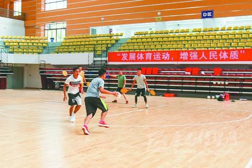 蹴主意為踢,廣義的蹴球就是踢球,亦稱“蹴鞠”。此次省民運(yùn)會上的蹴球項(xiàng)目以地?cái)S球?yàn)槠鞑?,屬?5類“蹴球”游戲之中的“踢石球”。