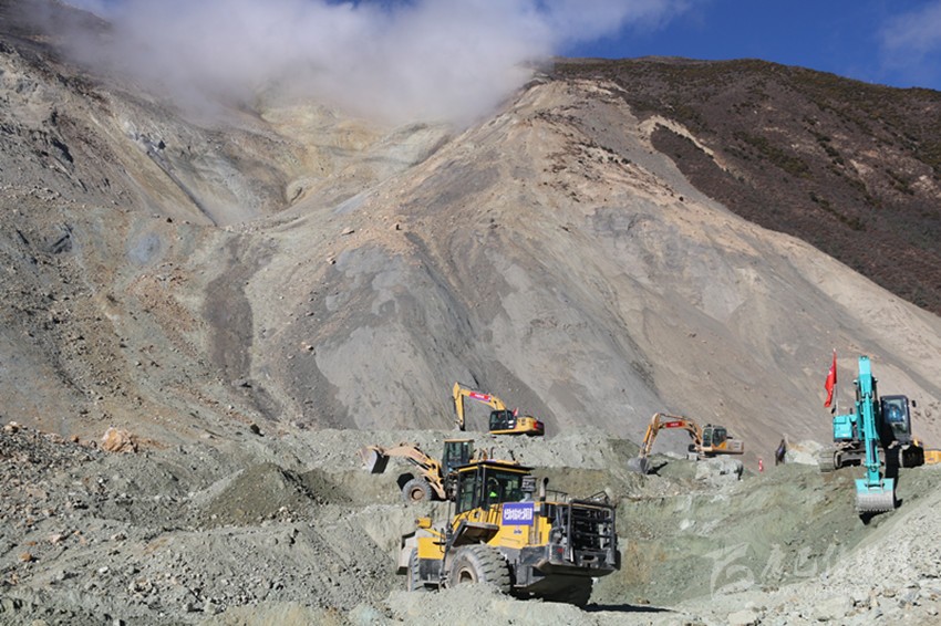 就在專家組緊急會(huì)商人工干預(yù)方案期間,從各地增援的大型機(jī)械已陸續(xù)抵達(dá)集結(jié)。11月5日下午3時(shí)左右,在下游葉巴灘水電站施工的水電五局的2臺(tái)挖掘機(jī)最先抵達(dá)白玉縣城,沒(méi)做停留又立即向則巴村方向前進(jìn)。