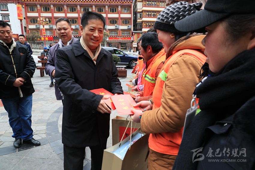 “你們每月工資多少?都按時(shí)領(lǐng)到了嗎?還有什么困難嗎?……”,慰問中劉成鳴非常關(guān)心環(huán)衛(wèi)工人的生產(chǎn)生活情況,與大家一一握手問好。劉成鳴代表州“四套班子”向奮戰(zhàn)在環(huán)衛(wèi)戰(zhàn)線的全體干部職工致以崇高敬意和新春問候,對堅(jiān)守崗位的環(huán)衛(wèi)工人付出的辛勤勞動表示衷心感謝。他說,環(huán)衛(wèi)工人是城市的“美容師”,情歌之城康定近年來城市面貌不斷提升、城市環(huán)境不斷改善,這是我們環(huán)衛(wèi)工人辛勤勞動和無私奉獻(xiàn)的結(jié)果。他說,隨著雅康高速的貫通,越來越多的游客會走進(jìn)甘孜來到康定,希望大家在新的一年里,再接再厲,繼續(xù)發(fā)揚(yáng)無私奉獻(xiàn)精神,立足本職,愛崗敬業(yè),把康定打扮得更加靚麗,為城市形象提升和全域旅游發(fā)展做出更大貢獻(xiàn)。他要求,相關(guān)部門要進(jìn)一步關(guān)心關(guān)愛環(huán)衛(wèi)工人,解決好他們工作和生活中的實(shí)際困難。