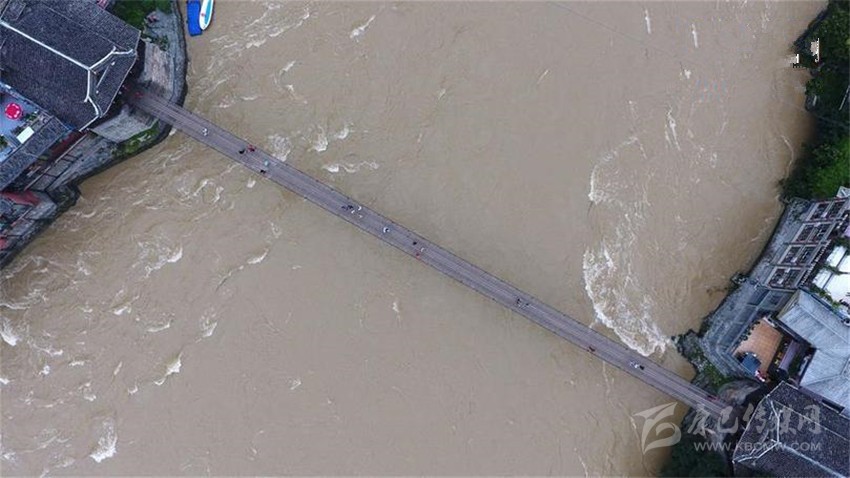 7月27日,游客行走在四川瀘定縣瀘定橋上(無人機拍攝)。新華社發(fā)(王曦 攝)