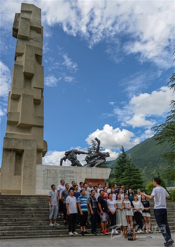 7月26日,市民在紅軍飛奪瀘定橋紀念碑下練習合唱。新華社發(fā)(唐文豪 攝)