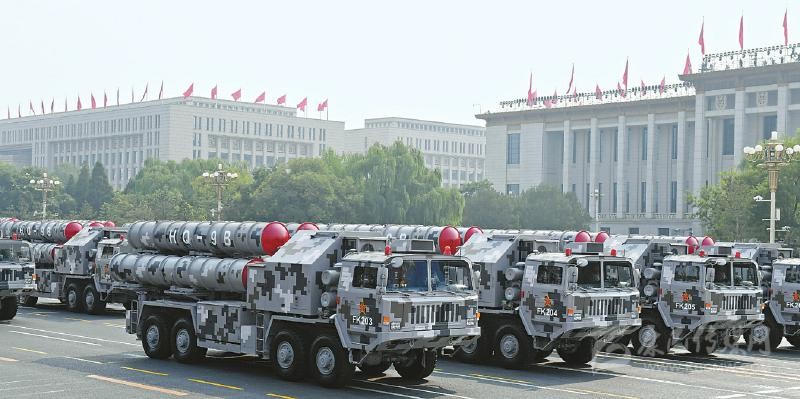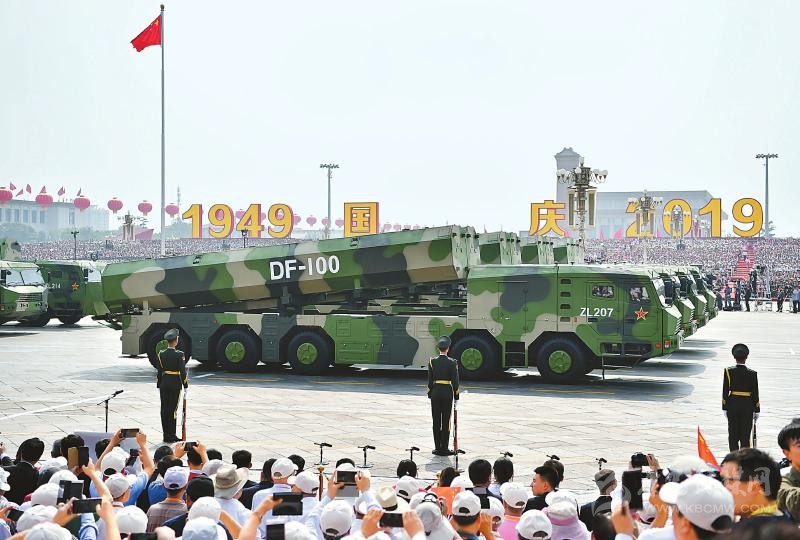 東風-41核導(dǎo)彈方隊接受檢閱。 新華社記者王曄攝
