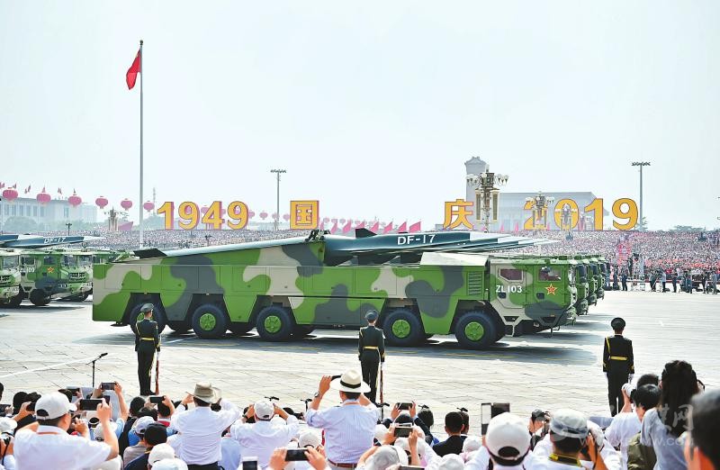 戰(zhàn)略打擊模塊1日壓軸出場。由張建強少將、王新國少將率領(lǐng)的東風-17常規(guī)導(dǎo)彈方隊,作為這個模塊的第一個方隊,威武莊嚴地通過天安門,光榮接受檢閱。