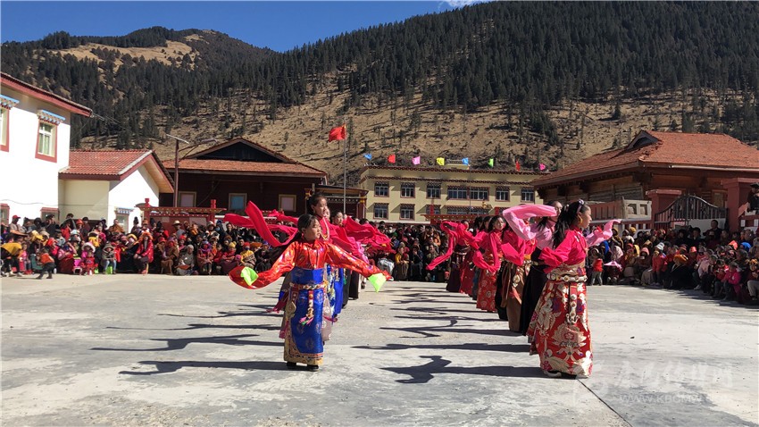 12月15日,雪后初晴。距離丹巴縣城37公里的高山深處,半扇門鄉(xiāng)臘月山三村,村民在嶄新的小廣場(chǎng)上跳起了鍋莊,幸福洋溢在每個(gè)人的臉上。