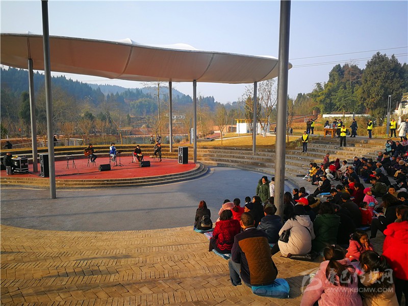 “遠(yuǎn)處的東山俯望著平靜的旌湖水,它流淌著,帶走了年輕的歲月……這就是我的家德陽,遠(yuǎn)方的人回來吧!”1月19日上午,在旌陽區(qū)東湖街道高槐村里傳來動聽的民謠。遠(yuǎn)遠(yuǎn)看去,村民們圍坐在“田野秀場”正聽著樂隊歌唱,不時還跟著音樂打著拍子。