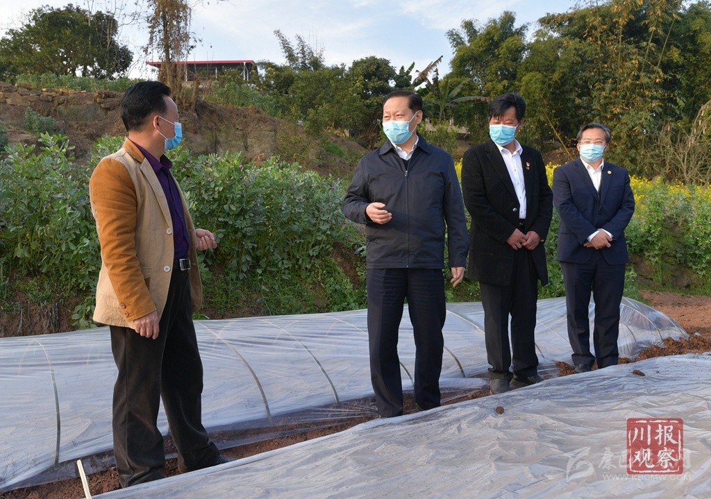 農(nóng)歷驚蟄時節(jié),田間地頭到處是機耕、播種、育秧的忙碌景象。彭清華來到瀘州市合江縣白米鎮(zhèn)斗笠村和自貢市榮縣雙石鎮(zhèn)大竹林村、蔡家堰村,實地了解農(nóng)村地區(qū)疫情防控、春耕備耕、生豬生產(chǎn)、農(nóng)民工外出務(wù)工等情況。