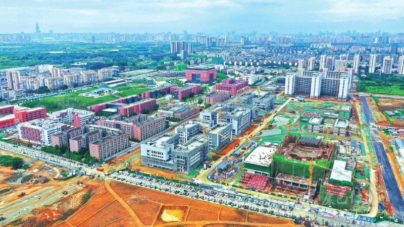 8月3日,鳥瞰成都龍泉驛區(qū)成都大學校內(nèi)的在建大運村。該項目21個新建單體中,除藝術中心外,其余20個新建單體主體結(jié)構(gòu)施工已完成,進入裝飾裝修階段。