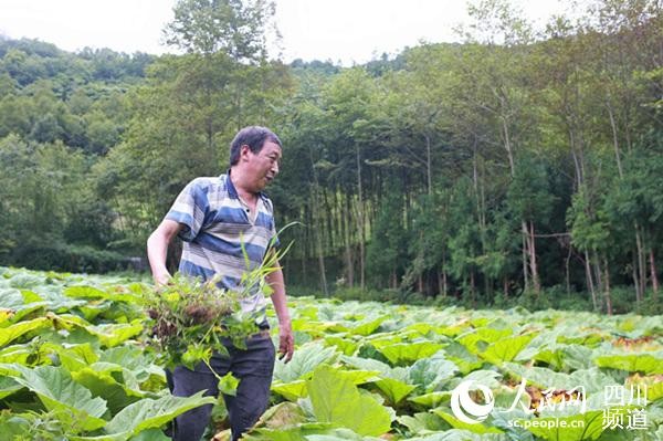 正在給中藥材重樓種植地除草的周尚軍。元啟 攝