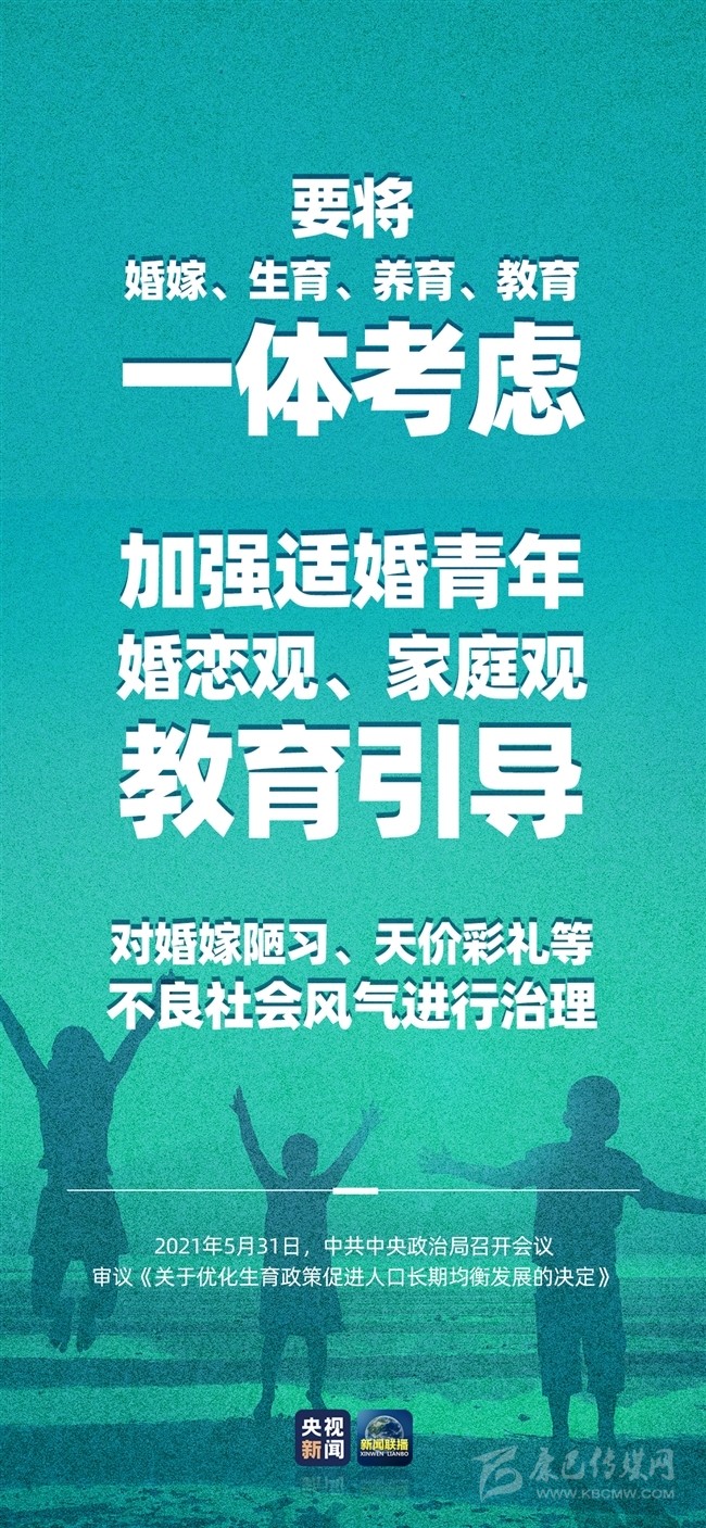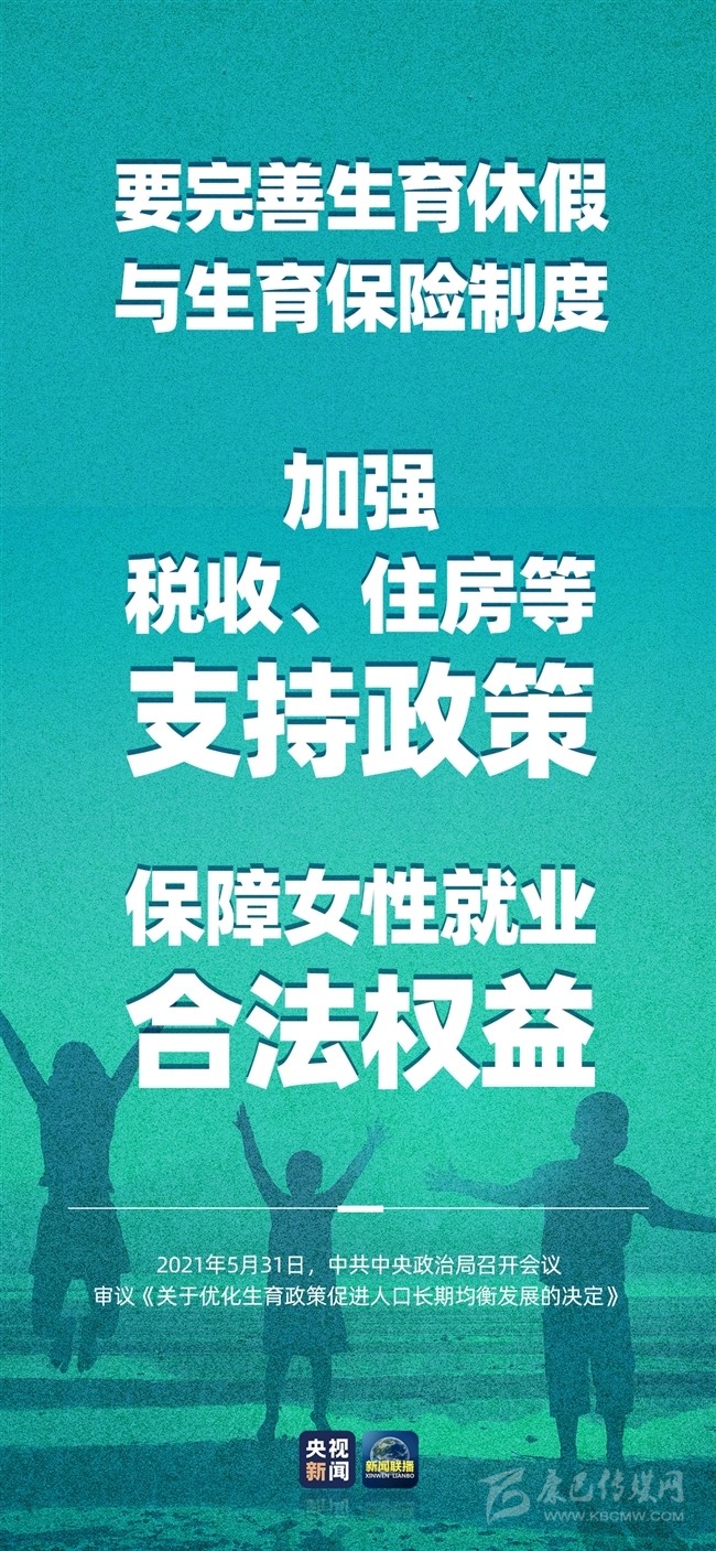 中共中央政治局5月31日召開(kāi)會(huì)議,聽(tīng)取“十四五”時(shí)期積極應(yīng)對(duì)人口老齡化重大政策舉措?yún)R報(bào),審議《關(guān)于優(yōu)化生育政策促進(jìn)人口長(zhǎng)期均衡發(fā)展的決定》。就積極應(yīng)對(duì)人口老齡化、調(diào)整生育政策等問(wèn)題,會(huì)議作出重磅部署。
