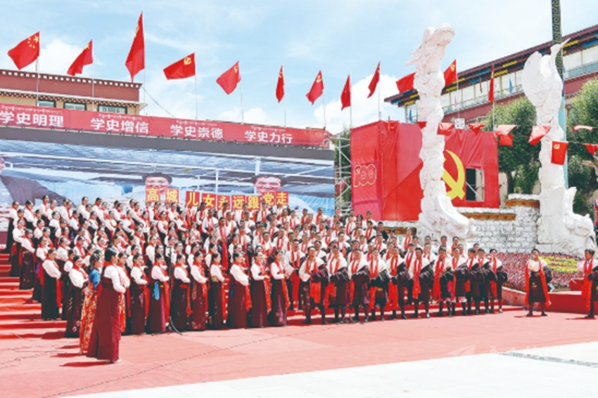中國共產(chǎn)黨成立以來的一百年,是中國人民根本改變歷史命運的一百年,是中華民族走向偉大復(fù)興的一百年,是中國為全人類發(fā)展作出卓越貢獻的一百年。中國共產(chǎn)黨團結(jié)帶領(lǐng)中國人民走過的光輝歷程,是用鮮血、汗水、淚水寫就的,充滿著苦難和輝煌、曲折和勝利、付出和收獲,是中華民族發(fā)展史上的壯麗篇章。中國共產(chǎn)黨領(lǐng)導(dǎo)中國人民取得的偉大勝利,讓中華文明在現(xiàn)代化進程中煥發(fā)出新的蓬勃生機,讓科學(xué)社會主義在21世紀煥發(fā)出新的蓬勃生機,讓中華民族煥發(fā)出新的蓬勃生機,是中國人民和中華民族繼往開來、奮勇前進的現(xiàn)實基礎(chǔ)。