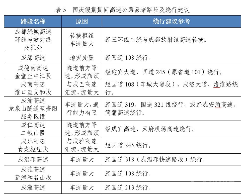 國(guó)慶大假即將來(lái)臨,去哪里?堵不堵?是公眾關(guān)心的熱點(diǎn)。9月28日,四川省交通運(yùn)輸綜合行政執(zhí)法總隊(duì)(廳高管局)、四川省公安廳交通警察總隊(duì)聯(lián)合發(fā)布假期高速公路研判,提醒廣大車主朋友們出行前合理安排出行時(shí)間和出行路線,盡量避開高峰時(shí)段和擁堵路段。