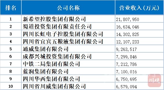 先來看看2021年四川企業(yè)100強前10名: