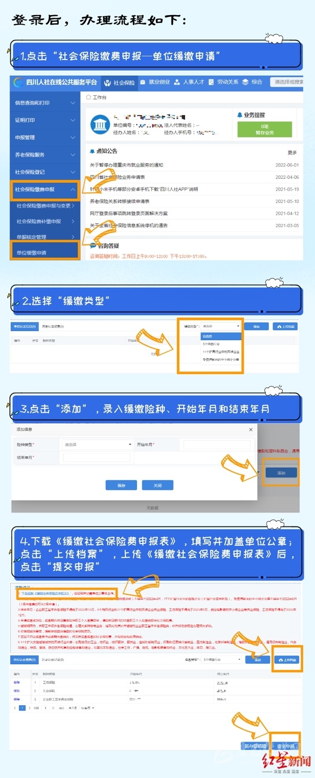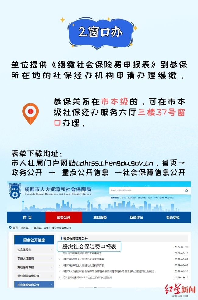 7月26日,紅星新聞記者從成都市人社局獲悉,今年6月,四川省人社廳、省發(fā)改委、省財政廳、省稅務局聯(lián)合出臺的《關于擴大階段性緩繳社會保險費政策實施范圍等問題的通知》,明確了延長階段性減免企業(yè)基本養(yǎng)老保險、失業(yè)保險、工傷保險單位繳費政策實施期限,同時將階段性緩繳社會保險費政策擴圍至22個行業(yè)。